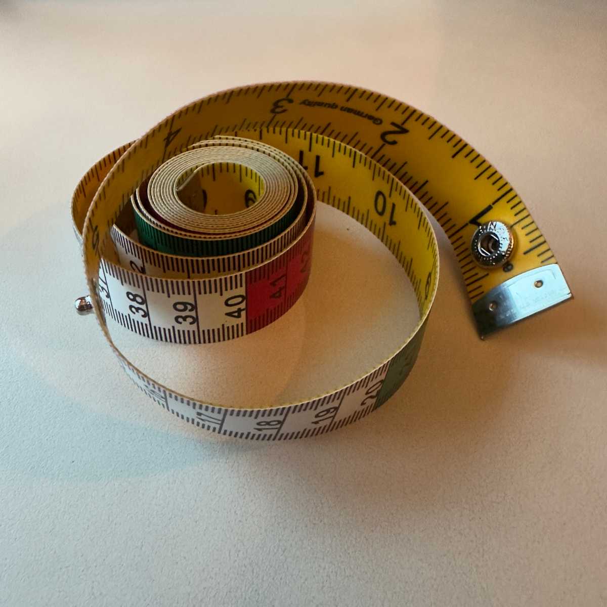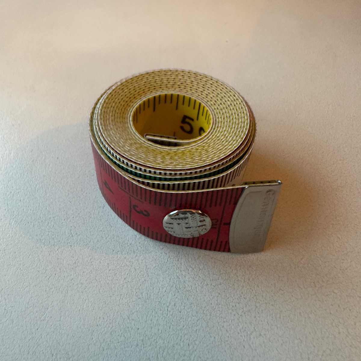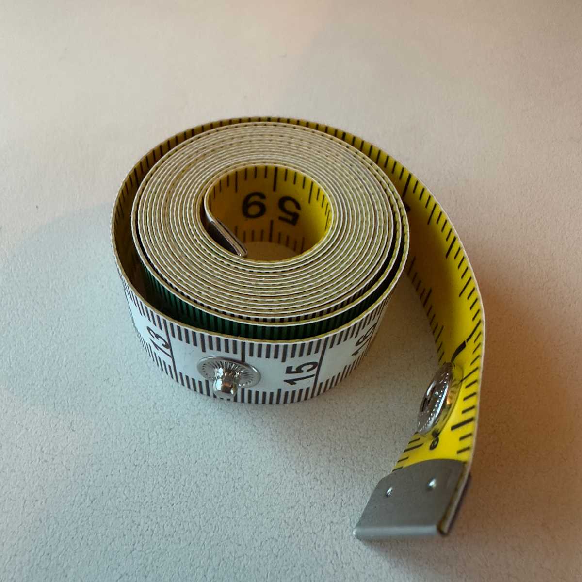 Tape measure in metric and imperial with small press stud closure
